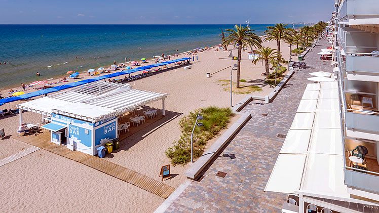 Hotel Miramar Calafell in Calafell has 215 rooms, spread over 5 floors. To make your stay more comfortable air conditioning, 2 elevators, a reception and a lobby are available. The staff in this 5 storey hotel speaks Spanish, German, French, Russian and English. A swimming pool is available. Accessible from the hotel: shops (4 km), disco (500 m), train station (500 m), horse riding (10 km), Cavas (38 km), Aqualeon (19 km) and Port Aventura (51 km). The hotel is within easy reach of bus stops, taxi stands, bars and restaurants, tourist information and supermarkets. For your entertainment the hotel features a TV lounge.