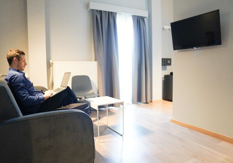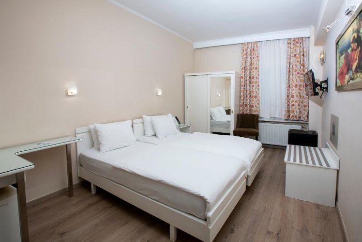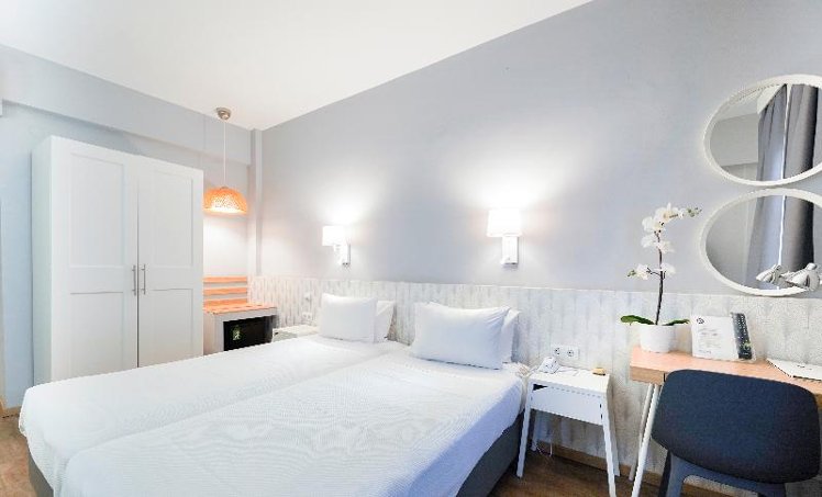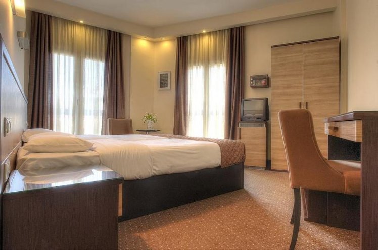 The hotel is located opposite the Helexpo grounds where Thessaloniki's International Trade Fair takes place in September. It is also where 12 other important departmental exhibitions are also organized. In addition, many cultural and political events take place here during the whole year. The hotel is also situated near to several museums. This hotel is an ideal choice for business travellers or holiday makers. It comprises a total of 100 rooms spread over 8 floors. Facilities include a lobby with 24-hour reception, currency exchange and lift access. The hotel features a bar, a restaurant and Cafe. Guests can enjoy free Internet and room service. The rooms all come equipped with en suite bathroom, direct dial telephone and TV. Each room has a terrace or balcony and air conditioning.