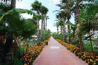This comfortable, elegant hotel complex is located amidst sprawling gardens in the Belek region of the Turkish Riviera, which is famous for its abundance of bird species and fabulous, aromatic pine forests. Located directly beside the hotel’s private beach, the property is some 2 km away from the nearby town of Kadriye. Antalya airport lies 29 km from the hotel and there is a bus stop found nearby. This sprawling complex comprises a total of 517 rooms including 7 suites. Facilities offered at this high-class residence include an impressive lobby, several shops, and an open-air restaurant with a roof terrace. In the outdoor complex guests may enjoy the swimming pool with a water slide and a children’s pool. Further leisure options include 7 quartz tennis courts, a squash court and an in-house gym.