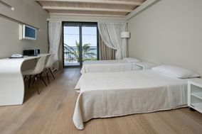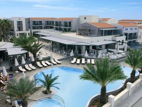 The hotel Aegean Pearl is situated approximately 50 m from a sandy/shingle beach. At the beach, sun umbrellas and sun loungers are free of charge. The tourist centre is about 2 km away. The town of Rethymno is around 2 km away (Chania around 65 km, Heraklion around 75 km). The nearest shopping facilities are located approximately 500 m from the hotel, a supermarket can be reached in around 100 m. It is only 100 m from the hotel to the nearest bars and restaurants. For evening dancing, you will find a nightclub at a distance of approximately 2 km. Further entertainment facilities such as a cinema are approximately 2 km away. The following attractions can be reached from the hotel: Old Town Rethymno (approx 2 km away), Arkadi (approx 25 km away), Knossos Palace (approx 75 km away), Chania (approx 65 km away) and Kournas Lake (approx 25 km away). For mobility during your holiday, there is a taxi rank (around 50 m away), a bus stop (approx 150 m away), a car rental company and a motorcycle rental. For medical treatment in emergencies, there is a hospital around 2 km away. The airport (CHQ) is approximately 67 km away. Another airport (HER) is located approximately 80 km away.