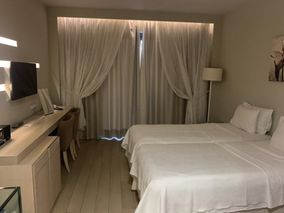 The 3-storey beach hotel consists of a main building and an adjoining building, and has 112 rooms in total. It is equipped with a reception (check-in from 14:00, check-out until 11:00), a lobby with bar, 2 lifts, air conditioning, a safe (for free), a mini market, a parking area (for free) as well and a money changing facility. For the meals, there is a restaurant (air-conditioned) and a snack bar. You will be warmly welcomed in both the hotel’s bars. WiFi is available for free. For guests dependent on a awheelchairi, the accommodation provides barrier-free access, a wheelchair accessible lift and several wheelchair accessible bathrooms. Room cleaning and concierge service are free of charge. Laundry/ironing service is available for a fee.