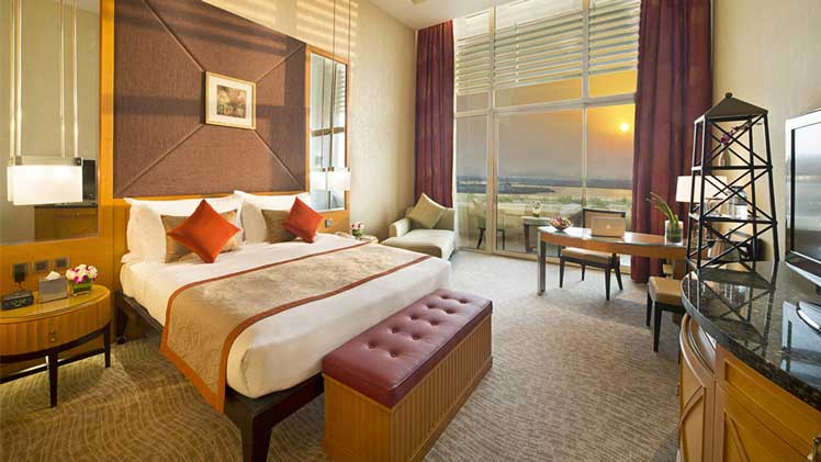 The hotel offers 110 guestrooms, including 4 executive, 2 diplomatic and 5 royal suites. The hotel also features 24 elegantly furnished villas. It has a Mc Gettigan bar and restaurant. There are two swimming pools, one outdoor and one indoor, a sauna and spa treatments. The hotel also offers a gym. For a truly wonderful stay in an idyllic setting, stay at Al Raha Beach.