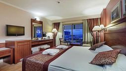 Opened in May 2008, the seafront facility on a 10.800 m2 area, despite the fact that it is a resort hotel has more than the capacity of guests open and closed areas are different from our other hotels with the variety of services provided.The seaside facility is 65 km from Antalya city center, 55 km from Antalya airport, 8 km from Side and 13 km from Manavgat.