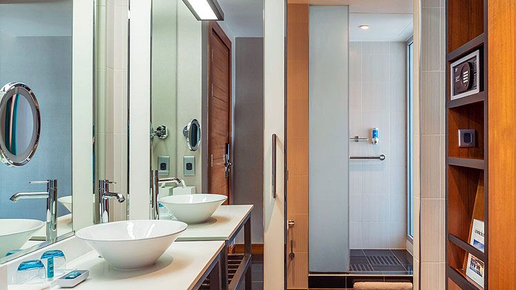 The hotel is set in the state-of-the-art Abu Dhabi National Exhibition Center, only 15 minutes from the city cent re which means access to one of the world’s most exciting cities is easy. Culture lovers can enjoy the superb city sights such as the Grand Mosque, while Abu Dhabi National Airport is just 15 minutes away and guests will find excellent beaches, restaurants, nightlife and shopping mall in the vicinity. Guests can swim in the outdoor swimming pool and refreshments are available from the poolside snack bar. Sun loungers are available and guests can join in an aerobics session or work out at the gym. The hotel offers a breakfast buffet, continental breakfast, lunch a la carte, lunch buffet, dinner a la carte, dinner set menu and dinner buffet. This business hotel brings a new twist to Abu Dhabi’s hotels and will ensure a guests stay is a truly memorable experience*