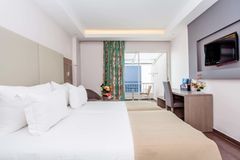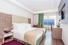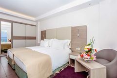 The hotel offers a selection of bright, modern rooms and suites designed to suit couples, families, and larger groups. Each room comes with air conditioning, a private bathroom, and a balcony or terrace, some offering stunning sea views. Amenities such as flat-screen TVs, minibars, and complimentary toiletries ensure a comfortable stay. For those seeking an extra touch of luxury, the royal suites provide additional space and premium features, making them ideal for special occasions or extended stays.