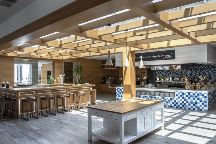In the outdoor area of the modern hotel you will find 3 salt / fresh water pools. Here, there are sun umbrellas where applicable, for a fee as well as sun loungers for free available. Refreshing beverages can be consumed directly at the pool bar.