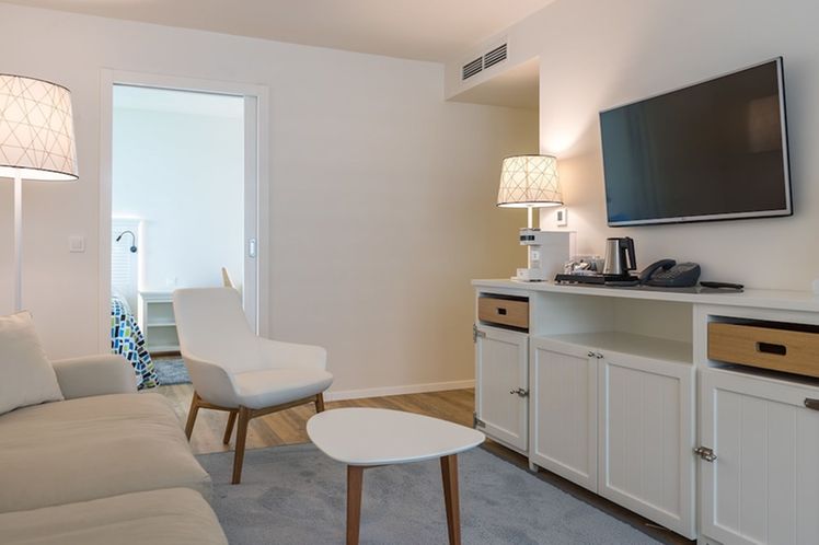The hotel Amadria Park Hotel Jure is located approx. 30 m from a sandy/shingle/rocky beach. At the beach, there are sun loungers and sun umbrellas for a fee. The tourist centre is about 6 km away. The town Sibenik is around 6 km away (Split around 88 km, Zadar around 90 km). The nearest shopping facilities are located approx. 3 m from the hotel, a supermarket can be reached after around 200 m. There are restaurants and bars within a very short distance of the hotel. The following attractions can be reached from the hotel: National Park Krka (approx. 25 km away) and National Park Kornati (approx. 40 km away). For mobility during your holiday, there are a taxi rank as well as a bus stop in a distance of around 40 m and a car rental company. Locations further away can be reached via the railway station in a distance of around 6 km. For medical treatment in emergencies there is a hospital around 6 km away. The airport (SPU) is approx. 60 km away. The hotel and airport are linked by a shuttle (for a fee). Another airport (ZAD) is located approx. 70 km away.