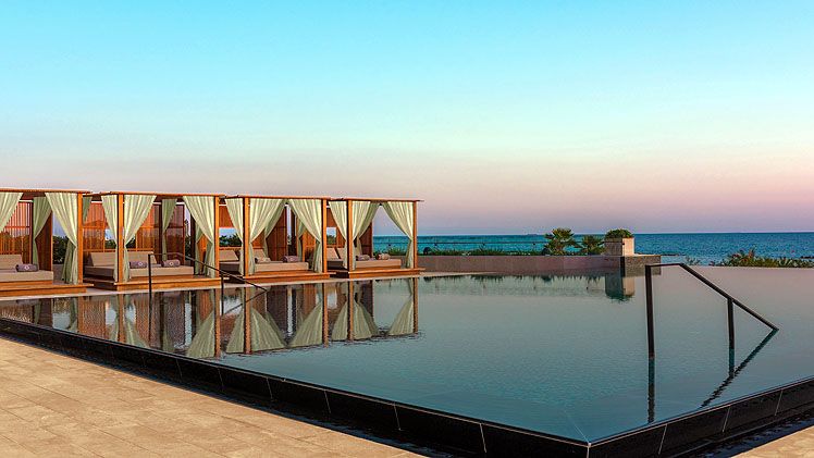 The name Amara comes from the Greek word “amarantos,” meaning “everlasting.” The resort enjoys a seaside beach location near the ancient site of Amathus and the city of Limassol. The resort’s design has been overseen by SB Architects, David Rockwell Studio and WA Interiors. It offers lavish rooms and suites with private balconies overlooking Akrotiri Bay and the wider Mediterranean Sea.