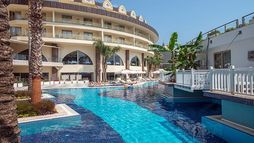 This hotel enjoys a charming setting close to Kemer. The hotel is located in Goynuk, at the foot of the Taurus Mountains. Overlooking the turquoise waters of the Mediterranean, the hotel enjoys an air of peace and serenity. The centre of the resort is located just a 5 minutes’ walking distance away. The larger resort of Kemer is just 7 km from the hotel, where guests can find a wide range of attractions, as well as shopping, dining and entertainment venues. Links to the public transport are available nearby, offering ease of access to other areas to be explored. The hotel enjoys a distinctive architectural design. The guest rooms are beautifully designed, oozing character and charm. Providing a number of exemplary facilities and services, this hotel is sure to impress.