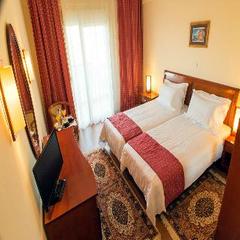 Perfectly positioned between the airport and the city centre of the ancient city is this convenient hotel. Sitting at just a 5-minute drive from the former and 15 minutes from the heart of Thessaloniki it offers its guests easy access to a number of local points of interest such as the Interbalkan Medical Center, IKEA, Thessaloniki Regency Casino and the Mediterranean Cosmos Mall. All rooms feature a modern design and comfortable furniture with everything need for a relaxing stay. When the weather permits the impressive outdoor swimming pool offers the perfect way to refresh at the end of a long day. If food is on the mind of the guests they can head to the onsite restaurant, which serves some great local and international dishes in a pleasant, soothing atmosphere.