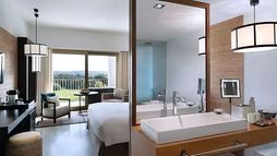 Located in Vilamoura, the Anantara Villamoura Resort is pure sophistication. From the amazing rooms to the panoramic views out over the beautiful fairways of the Oceanico Victoria Golf Course, designed by the legendary Arnold Palmer, the surroundings of this 5 star resort make it an authentic 360º experience. And for pure leisure, at this hotel near the beach in Vilamoura in the Algarve, take a dip in one of the fantastic swimming pools or sit back and enjoy some amazing delicacies prepared by our chefs at one of the numerous restaurants and bars. For a touch of the Far East, revive your spirits by pampering yourself at the Elements Spa by Banyan Tree. Families are welcomed, as kids will be fully entertained at the kids’ and teens’ clubs.