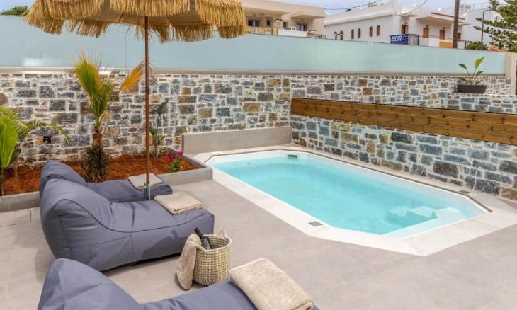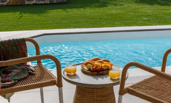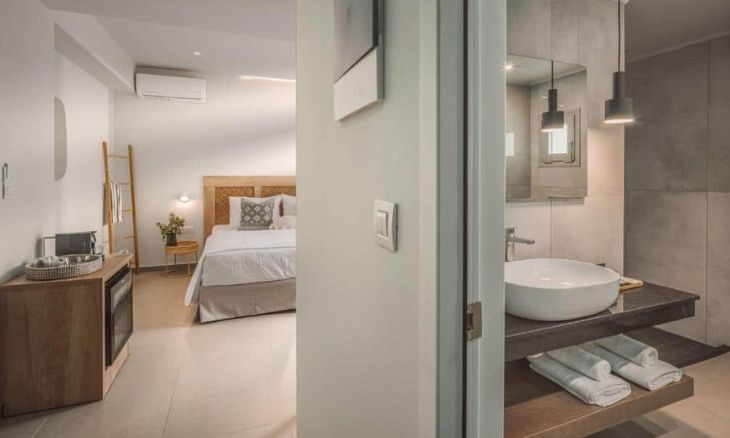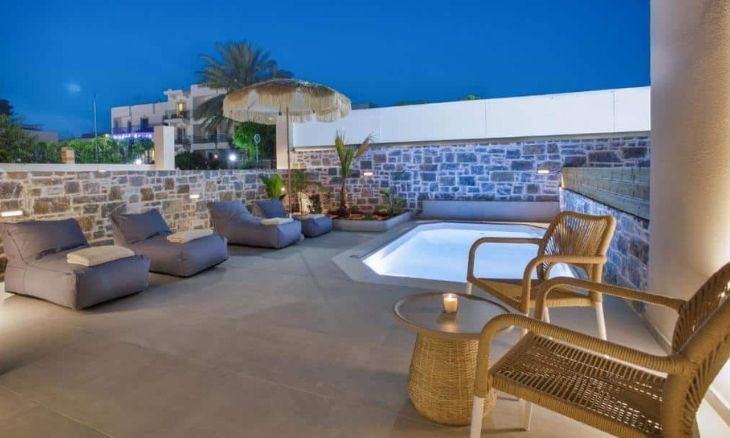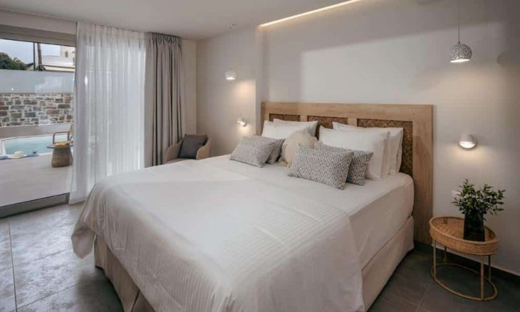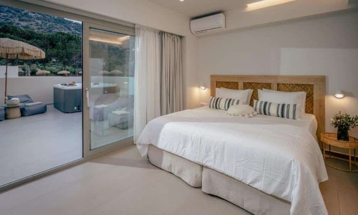 The accommodation options at Anassa Suites by Estia include a range of room types that suit various holiday preferences. Options consist of Deluxe Double Rooms, Junior Suites featuring heated Jacuzzis or private pools, and larger Suites with separate living areas and dual bedrooms. Each room comes with modern amenities such as flat-screen TVs with streaming services, coffee machines, private terraces, and soundproof walls to ensure a quiet and pleasant environment for guests.