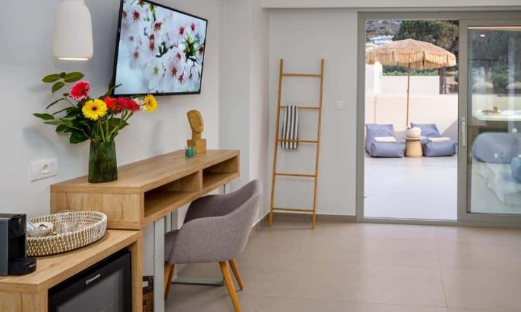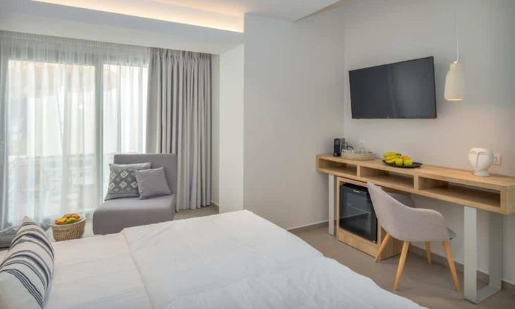 The hotel caters to active holidaymakers with a selection of sports and entertainment options. Guests have access to the outdoor pool and beach facilities, complete with sun umbrellas and loungers to enjoy the ample Greek sunshine. Modern in-room entertainment options include streaming services and smart TVs, while the overall setting encourages leisurely activities ranging from poolside relaxation to beach sports, making it a well-rounded destination.