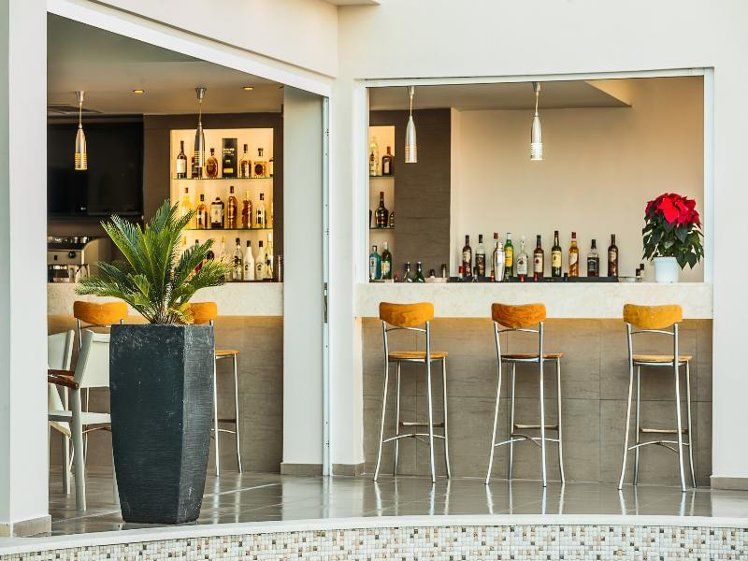 In the outdoor area of the mediterranean-style hotel you will find 3 pools with a separate children´s pool. Here, there are sun umbrellas and sun loungers for free available. Refreshing beverages can be consumed directly at the pool bar.