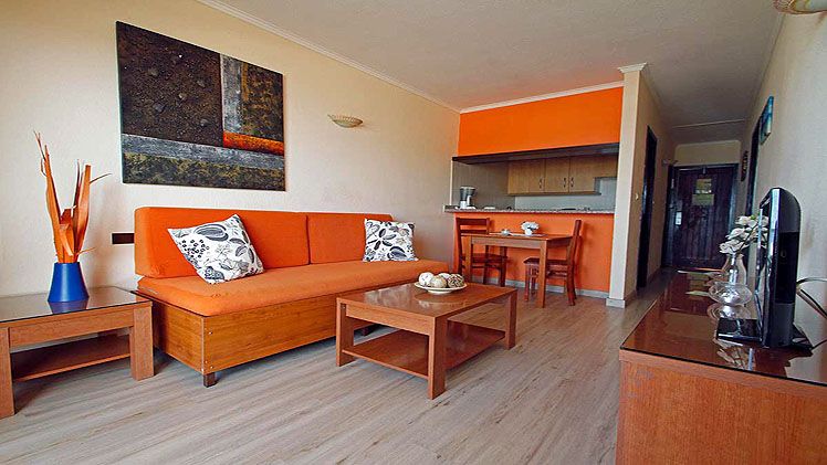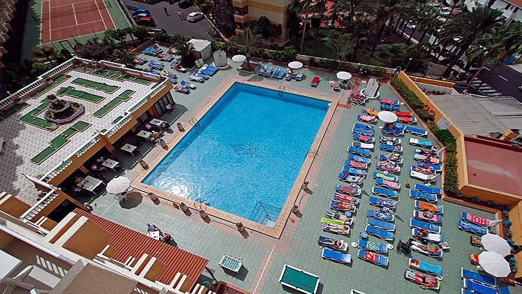 This apartment complex is located within walking distance of the beach and near shops, restaurants and entertainment, in Playa de Las Americas, on the south west coast of Tenerife. The hotel is very close to Siam Water Park. Only a few kilometers from the hotel guests can discover rural attractions such as Hell’s Ravine, Teide National Park and several charming, small towns.