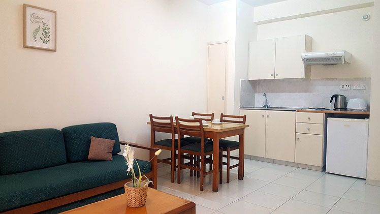 But it doesn’t matter which category you choose as all spaces come with the necessities including an en suite bathroom, air conditioning, cooking facilities and a mini fridge. Decorated in a traditional style with a wooden bed frame and tiled floors, expect basic but comfortable stays.