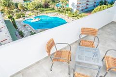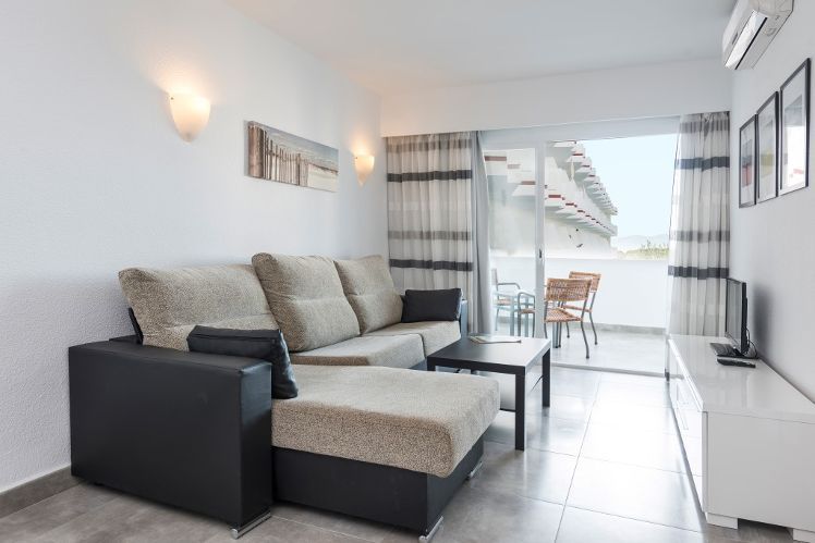 Surrounded by gardens with a lovely lagoon-shaped swimming-pool, tennis court, multi-sports court, children’s play area, The Red Lion bar & restaurant, El Amarre buffet restaurant and a supermarket on the premises (all open in high season), we invite you to relax, unwind and enjoy your stay in our apartments. WARNING: Lifeguard on duty at swimming-pool during the opening hours. There are restrictions in place regarding the use of inflatables and other leisure items in and around the pool.