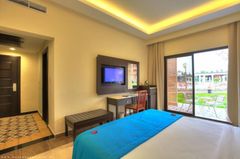 Accommodation at the Aqua Fun Club Resort is designed to cater to all preferences. Guests can choose from a range of rooms including Deluxe Garden View, Deluxe Family Garden View, Deluxe Family Pool View, Large Family Garden View, Large Family Pool View, and the opulent Royal Suite. Each room is spacious and stylishly decorated, equipped with modern amenities such as complimentary Wi-Fi, flat-screen TVs, and private bathrooms. The rooms offer stunning views of either the lush gardens or the sparkling pool area, providing a comfortable and luxurious retreat.