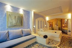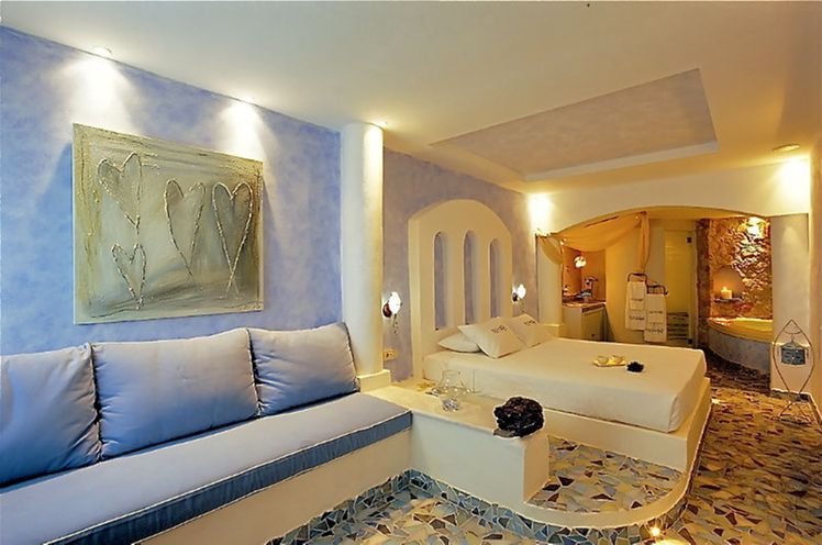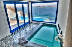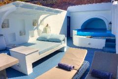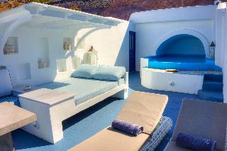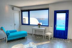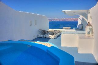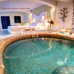 All 13 suites have volcano, caldera and sea view even from the interior of the suites. King-size bedroom, Private heated couples Jacuzzi, private terraces or balconies with the same breathtaking view, A/C, heating, soundproof, cable LCD TV, iPod dock, DVD players (upon request), free wi-fi internet access, isoclima window glasses, direct dial phone, mini bar, in room safe deposit box, hair dryer, make-up mirror, bathrobes, slippers, cosmetics and other comfort amenities.