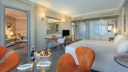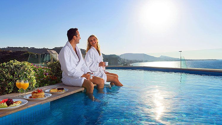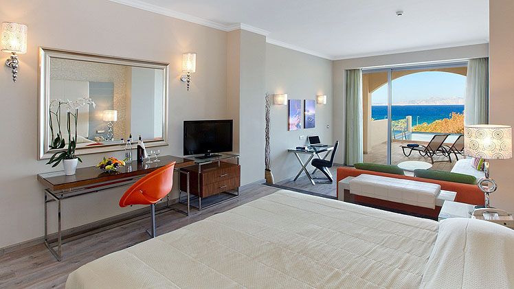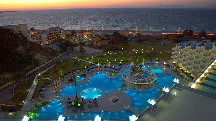 The fabulous brand new Atrium Platinum Luxury Resort Hotel & Spa overlooks the sapphire waters of Ixia Bay on the west coast of Rhodes near the ancient town of Ialyssos, and 5 minutes away from the fascinating Medieval City of Rhodes (a UNESCO world heritage site). Resting under the Acropolis of Rhodes City and surrounded by colourful gardens, palm trees, expansive pools, and endless beach views, this 5 Star retreat has a wide variety of well-appointed guestrooms with modern amenities and all boasting views of the shimmering Aegean Sea. Guests to the stylish Atrium Platinum Luxury Resort Hotel & Spa can enjoy gourmet dining, plenty of activities and water sports for adults and children, and state of the art conference and banquet facilities along with excellent service and warm hospitality from the friendly Staff.