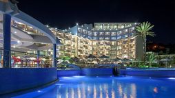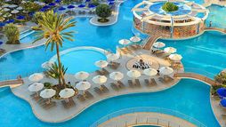 Food, drink and entertainment: Bed and Breakfast accommodation with options for Half Board and Full Board. The Atrium Platinum has an excellent choice of restaurants and bars with all types of cuisine. The Main Restaurant, the Grand Lobby and Main Bar share spectacular views. The divine tastes of the Gourmet & Asian Restaurants are located on the Roof Top Terrace with spectacular views of Ixia Bay. Two Thematic Restaurants on ground floor will mingle views of the sea, the open pool and the beautiful gardens.
