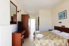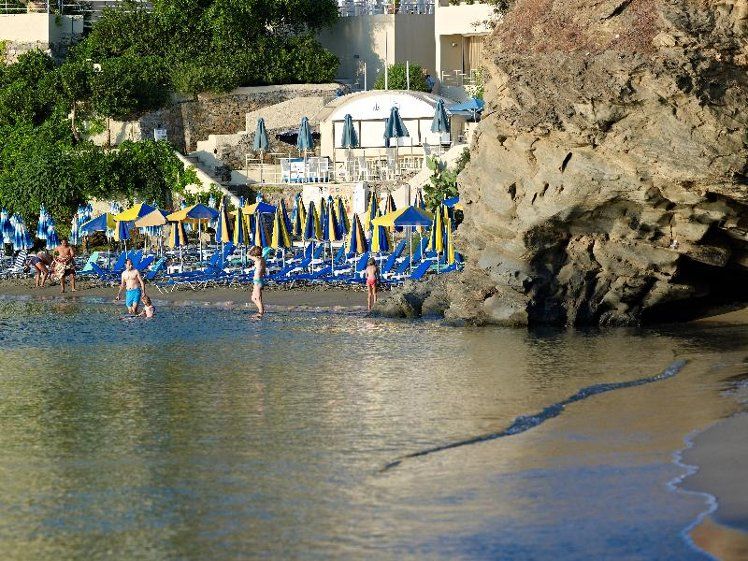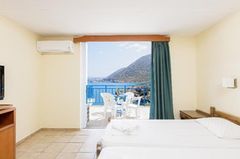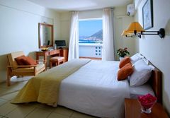 The hotel offers 195 well-appointed rooms, each designed to reflect the traditional charm of Crete with a contemporary twist. Guests can choose from a variety of room types, including double or twin rooms with either mountain or sea views, and family quartable rooms that can accommodate up to four people. Each room is equipped with modern amenities such as air conditioning, a flat-screen satellite TV, free internet access, and a fridge. The rooms also feature spacious bathrooms, private balconies or terraces, and are serviced six times a week to ensure a comfortable stay.