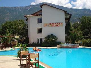 This 38-room hotel is situated in a friendly and quiet area, and guests should feel relaxed in this homely atmosphere. The hotel features high-quality service. In addition to a lobby area with 24-hour reception and check-out services, a hotel safe, currency exchange facilities and a cloakroom, facilities at this family-friendly establishment include a cafe, bar, TV lounge, restaurant and WLAN Internet access (fees apply). Room and laundry services can be enjoyed for a fee, and younger guests can let off some steam at the children’s playground. Guests arriving by car may use the hotel’s parking facilities.Oludeniz beach is only 4 kilometres from the hotel, which is 6 km from the town of Fethiye. The hotel is 200 m from the main road with easy access to the town of Hisaronu with its various restaurants, bars, pubs, nightspots and shopping venues, which is only 2 km away. Links to the local public transport network are 140 m from the hotel, and the bus station is 6 km away. The establishment is just 60 km from Dalaman International Airport.There is standard French bed or twin bed in every room. All rooms come with a shower and toilet and air conditioning units, while in-room amenities include a satellite TV, hairdryer and a telephone. Guests can store their valuables in their in-room safe and a balcony also comes as standard.There is a swimming pool in the hotel grounds with children’s section and a poolside snack bar. Sun loungers and parasols are laid out for use by the water’s edge. Guests can also enjoy a game of pool/snooker or badminton.Fethiye’nin dogal guzellikleri arasında kurulan Hotel Balkaya, misafirlerine dogayla ic ice bir tatil imkanı sunuyor.Konum ve Genel Ozellikler Balkaya Hotel’de geniş açık yuzme havuzu, çocuk havuzu, terasta guneşlenme, otopark, on buro, camasırhane, uyandırma servisi, market, emanet kasa, doktor, oda servisi, lobi bar, havuz bar bulunmaktadır. Langırt, bilardo, masa tenisi, oyun parkı, cocuk bahcesi aktivitelerinden yararlanabil