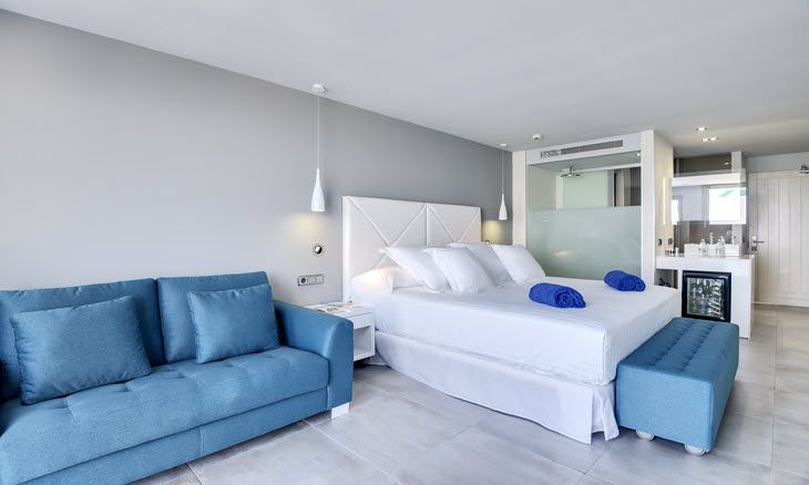 This “urban beach” hotel, set in tropical gardens, boasts a total of 246 modern Deluxe rooms and 58 Junior suites, equipped with hydromassage tubs and all of them with complimentary wireless Internet connection. Guests will enjoy two spectacular climatized infinity pools with hydromassage features, one of them with a view of the bay, and solarium areas with sun loungers and Bali beds. For sports enthusiasts, the hotel offers an open-air gym with a pool view, aerobic exercisers and free weights, and surf, windsurf and scuba diving centres within walking distance of the property. The wellness centre features a luxurious indoor pool with massage waterspouts and hydromassage beds, as well as a Finnish sauna, a hammam steam room, a contrast shower, relaxing loungers and beauty and massage treatments. The “Atlantic” Buffet restaurant has Asian and Mediterranean-themed speciality corners and shows cooking, an elegant Lounge Cocktail Bar with terrace seating, a Gastro Pool bar featuring a Mediterranean menu, and the “Champs” sports equipped with a pool table and big screen TVs transmitting all major sports events complete the superb gastronomic and entertainment offer of this hotel.