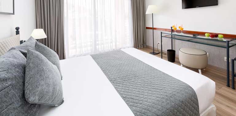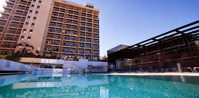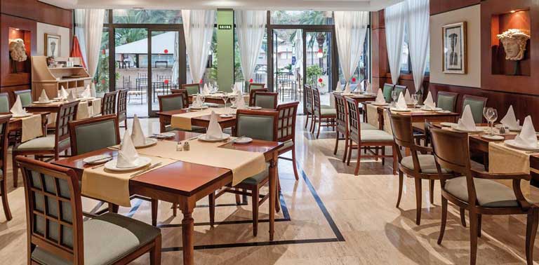 This hotel has 225 no smoking rooms, 212 are Double Rooms, 4 are adapted for persons with reduced mobility and there are 9 Suites, distributed on 12 floors. There is an entrance hall with 3 lifts, a Buffet Restaurant (La Casada), an A la carte restaurant (La Piazza), a hair dressers, a lobby bar (La Rotonda) a games room, internet terminal area and a 24 hour reception service.