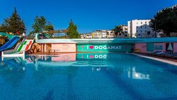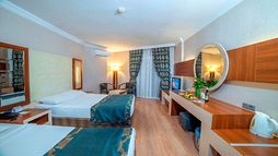 This modern, air-conditioned hotel is spread over 5 floors and comprises 373 rooms, of which 45 connecting family rooms. Guests are welcomed in the spacious foyer with a 24-hour reception desk, lifts, safes and a currency exchange counter. The hotel also features several shops, a hairdresser’s salon, a theatre, a games room, a nightclub, a café, a newspaper kiosk, a cosy bar and a restaurant (highchairs for infants are also provided). Business guests may make use of the function rooms for conferences and meetings as well as the public Internet terminal with WLAN access. Guests may also make use of the in-house laundry service as well as medical assistance. Younger guests may let some steam off in the children’s playground and kids club. Other facilities include a bicycle rental service, whilst those arriving by car may take advantage of the hotel’s car park.