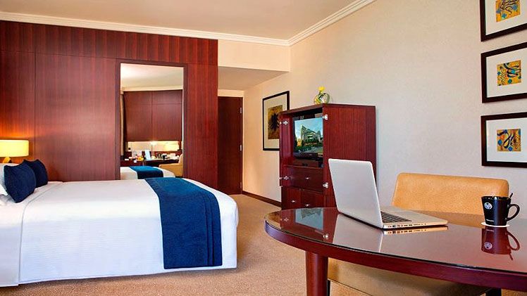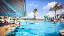 Beach Rotana Hotel & Towers hotel is conveniently located in the heart of Abu Dhabi business and main shopping district with direct access to a private beach. The hotel boasts 11 restaurants and links directly to the Abu Dhabi Mall. The hotel provides elegantly-styled accommodation, and offers 413 rooms. Each room is equipped with TV with satellite channels, air conditioning, voicemail and direct-dial telephones. Emphasis is placed on comfort and convenience with a sea view and private balcony also featuring in all rooms. Guests can choose from a broad variety of continental, Asian and Arab cuisines. Beverages can be enjoyed at the Lounge or Pool Bar. Come and enjoy the wonderful amenities and impeccable service at Beach Rotana Hotel & Towers.
