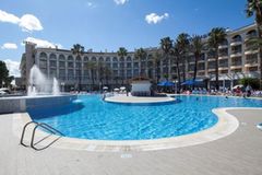 Recently renovated in 2015, the 5-storey 4-star beach hotel has 400 rooms in total. It offers its guests a 24h reception (check-in from 15:00, check-out until 12:00), a lobby, 3 lifts, air conditioning, a safe (for a fee), kiosk, a mini market, various other shops and a parking area (for a fee). For the meals, there is a restaurant (air-conditioned) and a snack bar. You will be warmly welcomed in both the hotel’s bars. WiFi is available for free. For the user of an Internet corner the hotel charges, where applicable, a fee. For guests dependent on a wheelchair the hotel has a wheelchair accessible lift. Laundry / ironing service and medical service are available for a fee.
