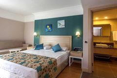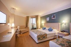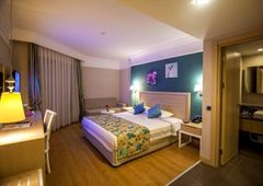 The contemporary rooms are simply furnished with a private en suite bathroom and balcony, and the modern main restaurant offers both Turkish and international cuisines buffet-style. Guests can also enjoy drinks and snacks throughout the day at the six bars, all during a relaxing, sun-filled family holiday.