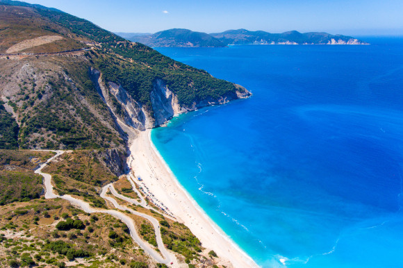 Why visit: There’s one place most of us think of when we envision Kefalonia, and that’s the dramatic coastline of Myrtos Beach. Catching the attention of beach-goers all over the world with its white cliffs and even whiter sand, the views are out of this world. And with an absence of watersports, you can admire your surroundings in silence.