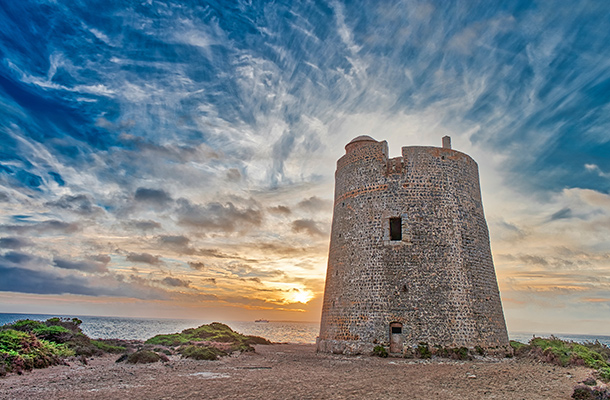 This enticing viewpoint on the island’s southeast tip is a prime spot for watching the Ibizan sunset. Standing nearly 13m high, Ses Portes was built as a watchtower to look out for invading pirates, occupying far-reaching views across the Aegean.