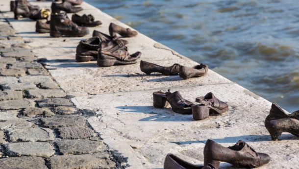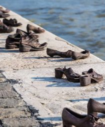The iron shoes found along the Danube riverbank on the Pest side are a monument to the Jews that were executed here during World War Two. There are more than 60 pairs of shoes, a valuable item that the victims had to remove before being shot. They are all based on shoes from the 1940s and often have pretty, colourful flowers placed inside them.