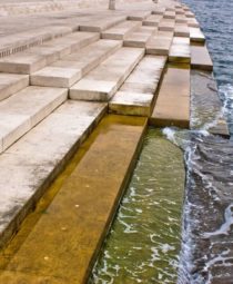 This may look like it is just steps leading down into the water but it is actually a musical instrument that is played by the waves. Both water and air flow through chambers into the steps closest to the sea and they come out at the top, producing a chime-like noise. The sound produced varies with the changing motion of the sea.