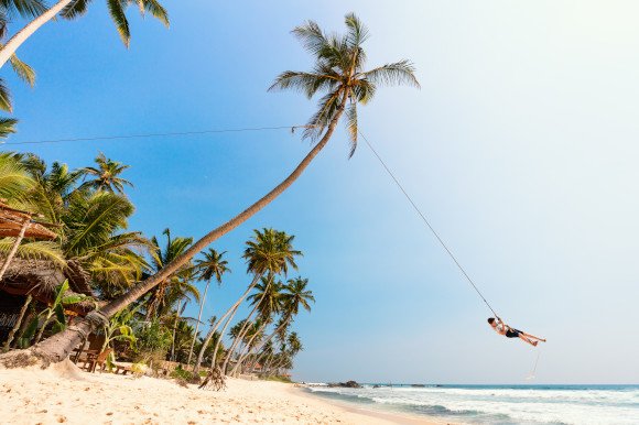 About the beach: Palm trees bend over the golden sand that leads down to the wavy turquoise water on this Sri Lankan beach. But, this stretch of sand is primarily known for its insta-famous rope swing, which you’ll find hanging from a palm tree near Salt Beach House.