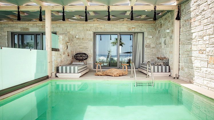 With the intent of uniqueness, all the suites of our hotel have a unique construction and decoration, giving each one its special personality. All the suites, decorated in a minimal rhythm, with very careful details and with influences from the Middle East, were created to offer you the ultimate mental and physical tranquillity in front of the blue waters of Halkidiki.