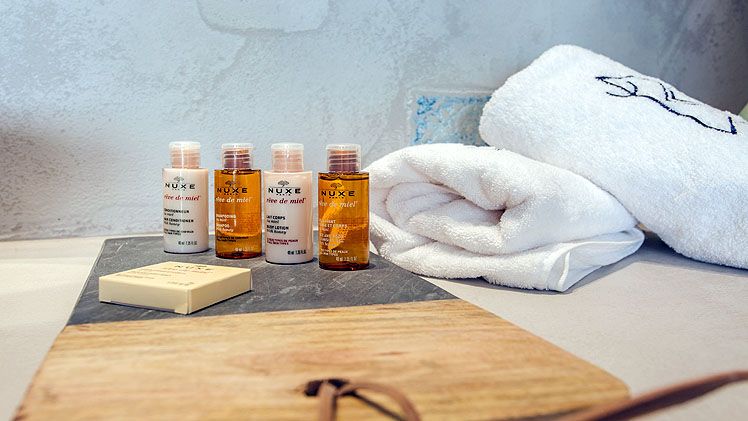 Guests can choose among different types of suites, accommodating up to 2 adults and 2 children or 4 adults. All suites come fully equipped with balcony or terrace, kettle, Nespresso machine, bathrobe and slippers, LED tv with satellite channels, hair dryer, bathroom amenities, pillow menu, WIFI. Some of the suites offer a private pool