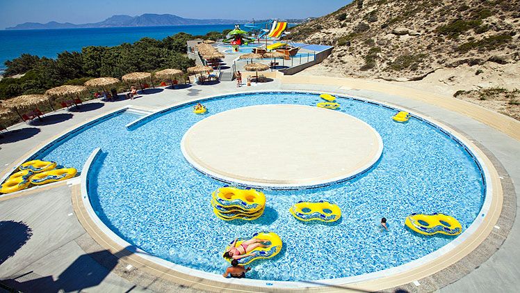 Blue Lagoon Village is a luxurious village style complex with 366 guestrooms. This all inclusive hotel is in direct contact with the sandy beach offering magnificent views. It is located only 10 km from the centre of Kefalos, near Paradise Beach one of the most beautiful beaches of Kos, only 7 km from the airport and 30 km from Kos town, the capital of the island.The Blue Lagoon Village offers a vast range of facilities like the Aegean Main restaurant with indoor and outdoor sections, the Thalassa Fish tavern, the Susshimi Sushi restaurant and the Golden Sun Chinese restaurant offering you different tastes from all over the world. The Mythos Taverna serves traditional Greek dishes, the Piazza Italian restaurant offers a taste of Italy, the Green & Grill is the place where you can grill your own combination of different meats and finally the Gelateria where you can enjoy panckaes, waffles, sweets and ice-cream.You will have a hard job choosing where to have your drink; at the Shake & Mix Pool bar any time of the day, the Wet Pool bar, an impressive swim-up bar, the Plaza Pool bar the Piazza bar and the Theater Bar in the afternoon or the Beach and Snack bar during the day.