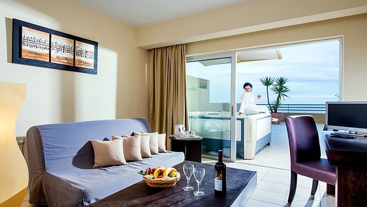 The enhanced All Inclusive Blue Marine Resort & Spa package starts from the moment you arrive at our resort until the time you depart. Includes daily three meals served at the resort’s principal restaurant “Blue Aegean”, including unlimited soft drinks, a variety of juices, local draft beers, domestic-house red or/and white wines, coffee, a variety of tea and water. A variety of a rich American buffet breakfast, an International & Greek cuisine on a great buffet selection for starters, salads, desserts and day specials, including vegetarian and gluten free options for the main course during lunch and dinner are also available.Daily Late continental breakfast, Light Snacks such as sandwiches, popcorn, variety of vegetables, baguettes, hotdogs, tea, coffee, waffles, sweets, cakes and biscuits, served at our Pool Bar.