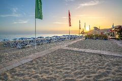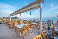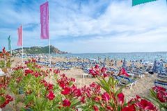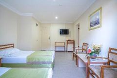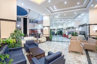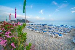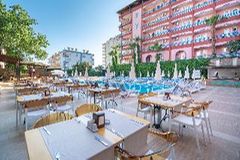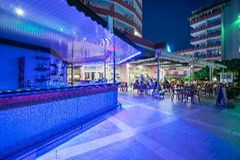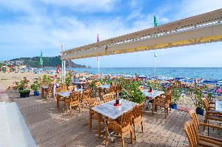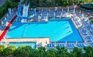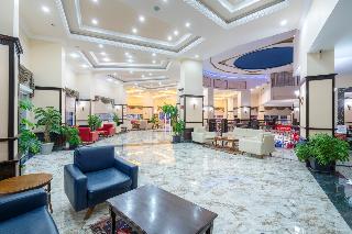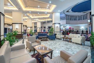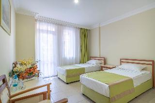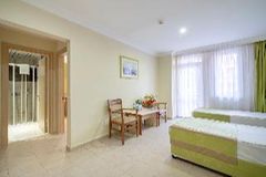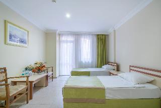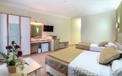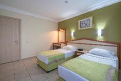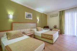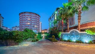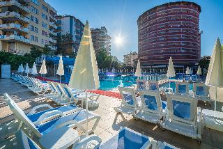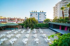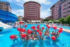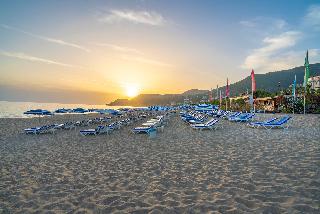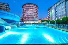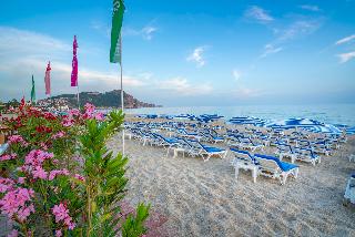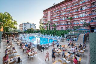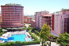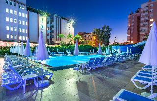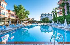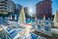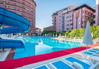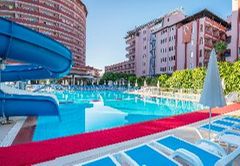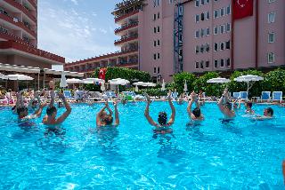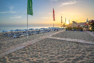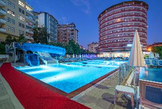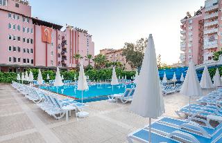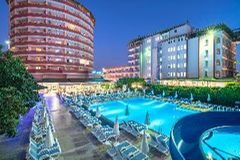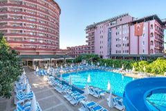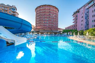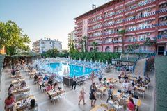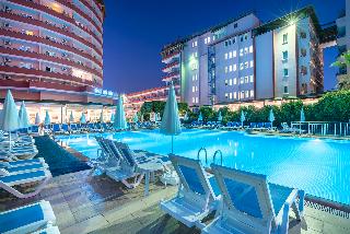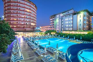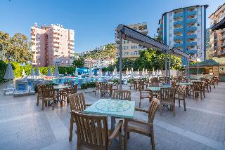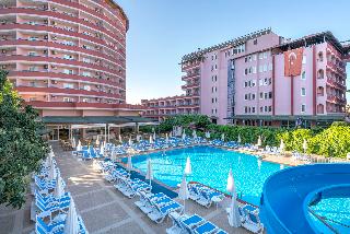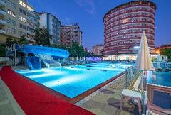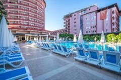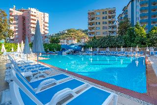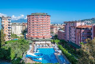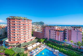 The hotel is located towards the west side of the popular resort of Alanya. Cleopatra Beach is roughly 600 m away. The centre of the resort with its many attractions, including shops, restaurants and bars is 2 km away. Public transport connections are only around 100 m from the hotel, while the bus station is about 200 m away. Antalya Airport is approximately 130 km away from the hotel. The air-conditioned, family-friendly hotel offers a total of 335 rooms and suites. Guests are welcomed in the lobby, which offers a 24-hour reception, a hotel safe and currency exchange facilities. Further amenities include a hair dressing salon, a restaurant and conference facilities. The rooms are comfortably furnished and fully-equipped as standard featuring a satellite TV, a mini fridge and a hire safe box. Each room also comes with a balcony or terrace.
