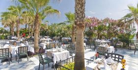 This hotel was built in 1988 and renovated in 2004. It offers a 3-storey main building and 3 annexe blocks with a total of 617 rooms. The facilities include a spacious lobby with a lift, a 24-hour reception, a safe, a currency exchange desk, a games room (paid),(Internet café is extra charged) In addition, there is a small supermarket, several shops, a hairdresser’s salon (extra charged), Disco an open terrace restaurant Breakfast, lunch and dinner are served as an open buffet in the main restaurant with many options. 1 x per stay the guests can have a dinner with reservation in each of the 6 à la carte restaurants (ottoman, italian, fish, Sushi, chinese, Teppenyaki).Further services include a laundry service (paid) and Doctor service is extra charged. Outside, the hotel owns a playground with a Mini club (4-12 ages) as well as parking facilities.