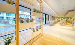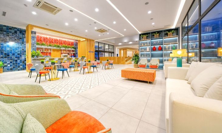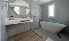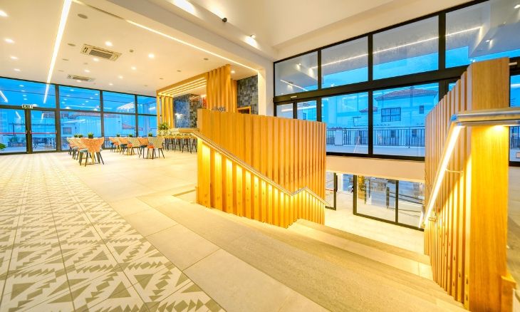 The hotel offers a range of accommodation options, from spacious suites with private terraces to premium rooms with modern amenities. Each suite is designed to provide a home-like environment, featuring a living room, a fully equipped kitchen, and a bathroom with all necessary toiletries. The Deluxe Superior Rooms are located on the top floor, offering a private terrace with sunbeds, while the Family Rooms are perfect for larger groups, with two bedrooms and a separate living area. All rooms are equipped with a Smart TV, Wi-Fi, and USB chargers to ensure a comfortable and connected stay.