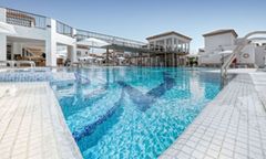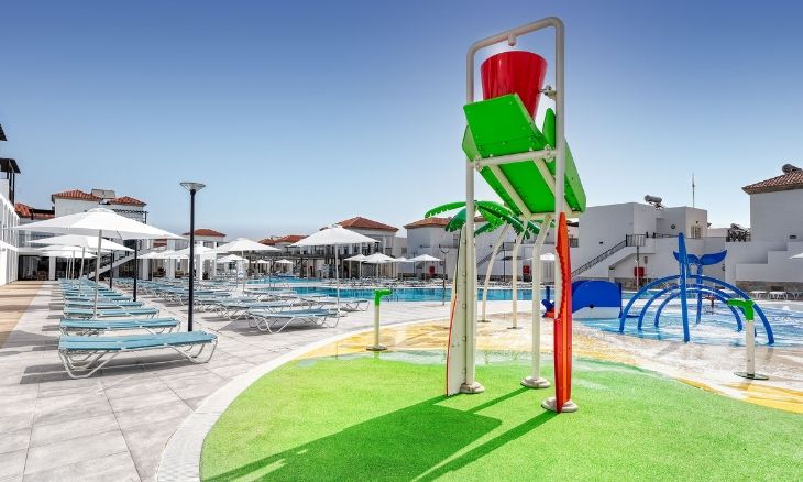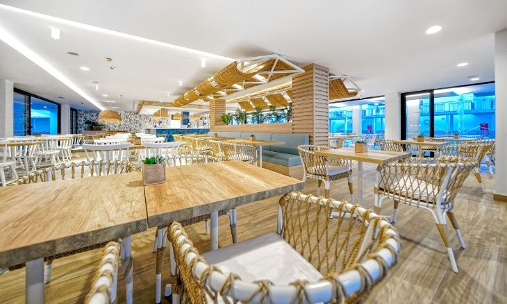 Broncemar Beach Suites Hotel boasts a variety of facilities aimed at enhancing the guest experience. The hotel features three outdoor swimming pools, including a heated pool for adults and a separate children’s pool, all surrounded by sun loungers and umbrellas in the solarium area. The hotel also offers a well-stocked games room with activities such as darts, table football, and a large screen for sports enthusiasts. For families, there is a dedicated children’s area complete with a mini club, splash zone, and a mini disco. Additional conveniences include a 24-hour reception, on-site supermarket, and Wi-Fi throughout the hotel.