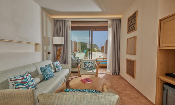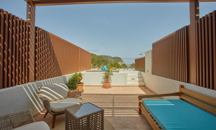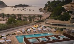 Experience the allure of Cala San Miguel The Club, situated along the captivating beachfront. Our rooms exude freshness, brightness, and contemporary elegance, with select accommodations affording captivating bay vistas. Indulge in diverse culinary delights crafted from locally sourced ingredients at our restaurant, complemented by an array of inviting bars, including a poolside option. Unwind amidst serene terraces and delight in live music and DJ performances as the sun sets. Opt for rooms with Premium Club access for exclusive services and luxury indulgences, while enjoying access to additional amenities at the adjacent Cala San Miguel Hotel.