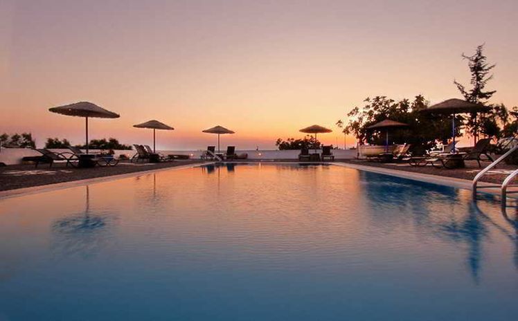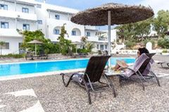 Situated at the village of Akrotiri, this lovely establishment is only 15 km away from Fira, the island’s capital. The famous Kokkini Paralia Beach is a mere 2 km away. This hotel offers a pool with large sun terrace, ideal for guests to work on their healthy tan. All the rooms are bright and decorated according to the traditional Cycladic style. Each one of them comes with modern amenities and a veranda that offers views of the pool, the garden or the caldera. Guests can start their day with a traditional homemade breakfast prepared daily by the hotel’s owners. They can also enjoy refreshing drinks or light meals by the pool.