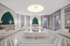 The spa hotel has 420 rooms in total. It is equipped with a reception (check-in from 14:00, check-out until noon), a lobby with a bar, air conditioning, a coiffeur, a discotheque, a cinema, a parking area (for free) as well as a money changing facility. WiFi is available for free. Room cleaning is free of charge. Room service, laundry/ironing service and medical service are available for a fee.