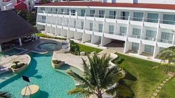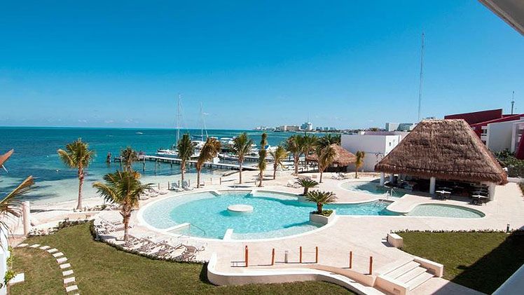 In the vicinity of a sandy beach is located the hotel Cancun Bay Resort. At the beach, there are sun umbrellas and sun loungers free of charge. The town Cancun is around 7 km away (Playa del Carmen around 70 km). The nearest shopping facilities are located approx. 12 km from the hotel, and also a supermarket is in the vicinity of the hotel. It is only 200 m from the hotel to the nearest bars and restaurants. For evening dancing you will find a nightclub in a distance of approx. 8 km. Further entertainment facilities such as a cinema are approx. 12 km away. For mobility during your holiday, there are a taxi rank as well as a bus stop in a distance of around 100 m. For medical treatment in emergencies there is a hospital around 5 km away. The airport (CUN) is approx. 32 km away.